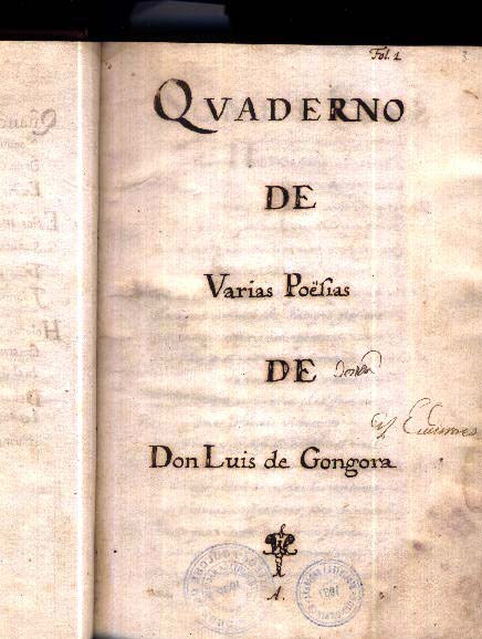 | Título | Dedicatoria (al margen) | Primer verso | Folio |