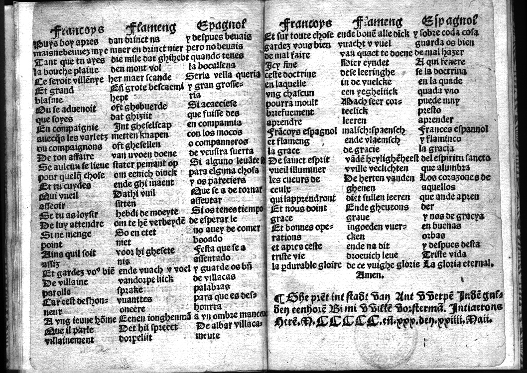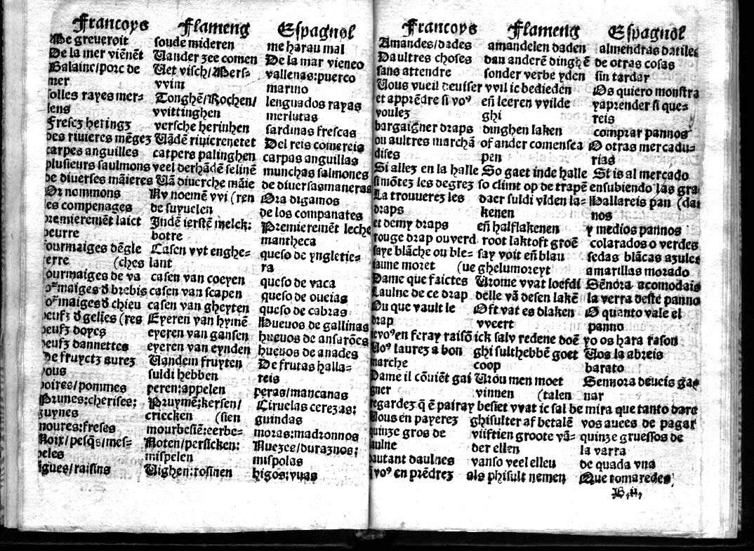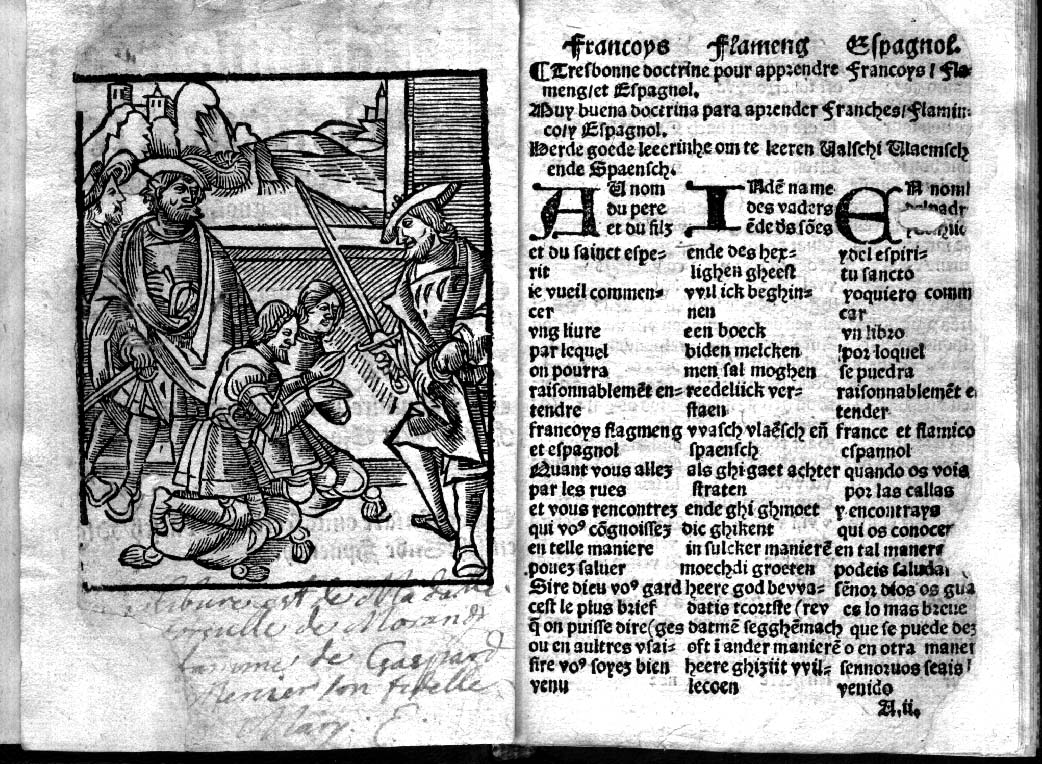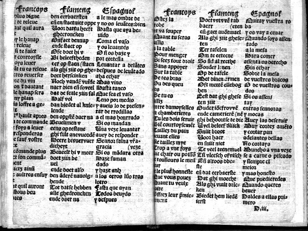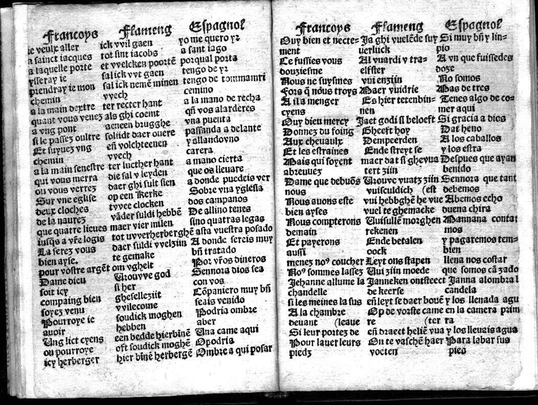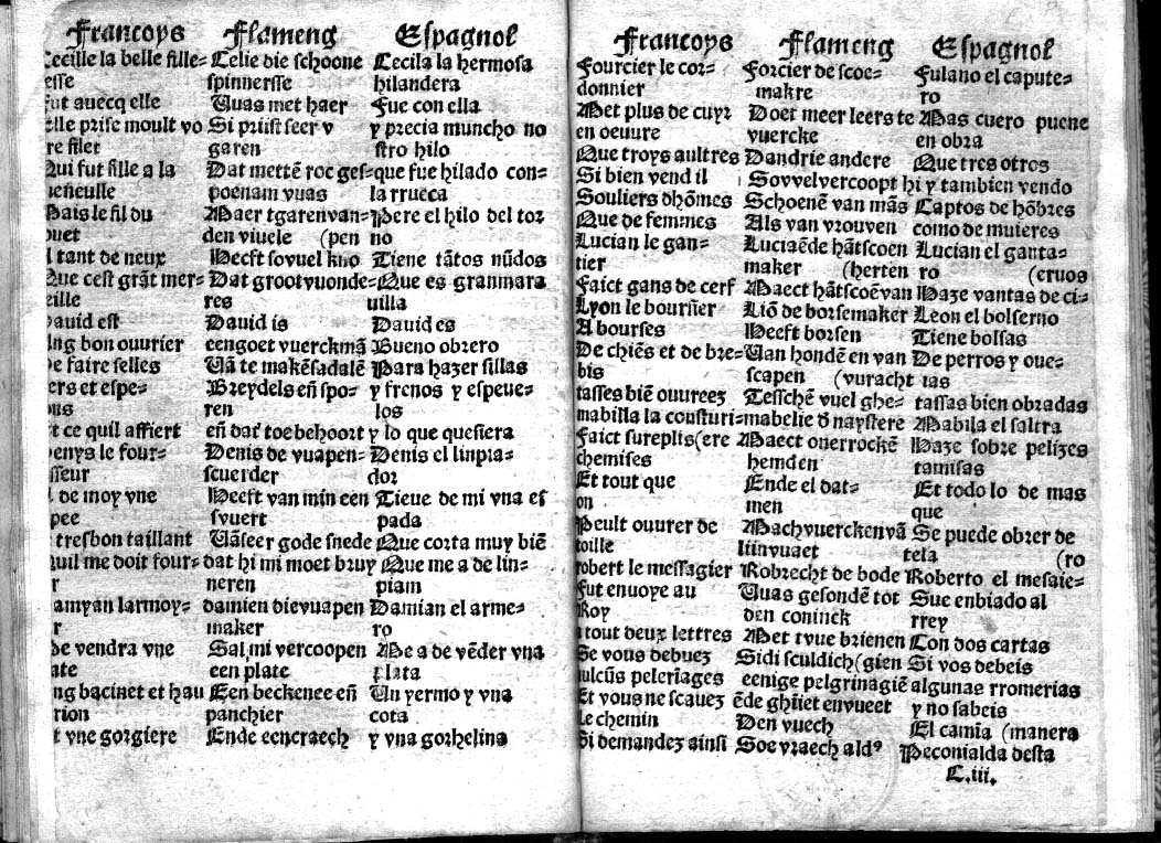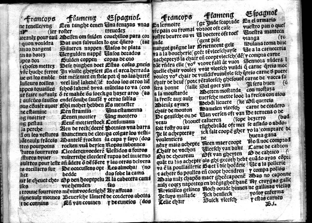 ΒΆ Vocabulaire en || troys langues: cest || assauoir / francoys / flameng / || et Espagnol. || Vocabulario para aprendre Frãches: Fla/ ||minco y Espagnol. || Vocabulaire pour apprendre Francoys/ || Flameng et Espagnol. || Vocabulare omte leerene Walsch / Vla||emsch: Ende Spaench.
