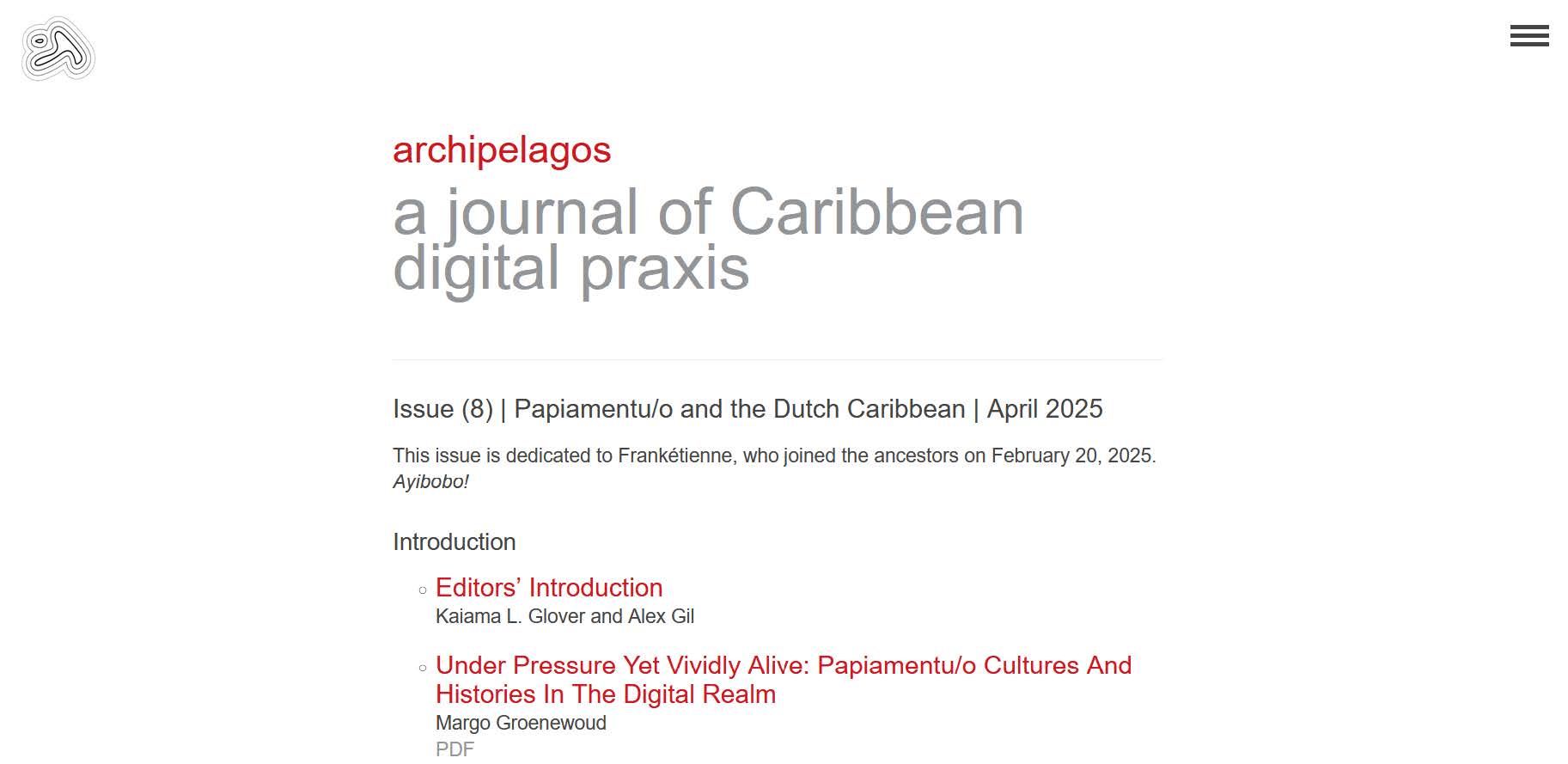 La revista archipelagos: a journal of Caribbean digital praxis es una publicación académica de acceso abierto dedicada a las prácticas digitales en el Caribe y sus diásporas. Utiliza herramientas de código abierto y una infraestructura ligera de sitios estáticos que facilita su sostenibilidad, reduce costos y garantiza accesibilidad incluso en contextos de baja conectividad.