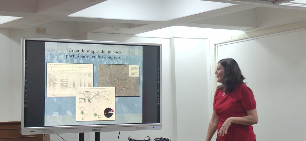 Mientras que el último día de intercambio, se llevó a cabo un conversatorio dictado por Jo Crow (University of Bristol) y Patience Schell (University of Aberdeen) quienes presentaron sus trabajos sobre redes de intelectuales y la circulación de ideas en América Latina entre 1850 y 1950, con algunos ejemplos desde la investigación histórica y las humanidades digitales, como: